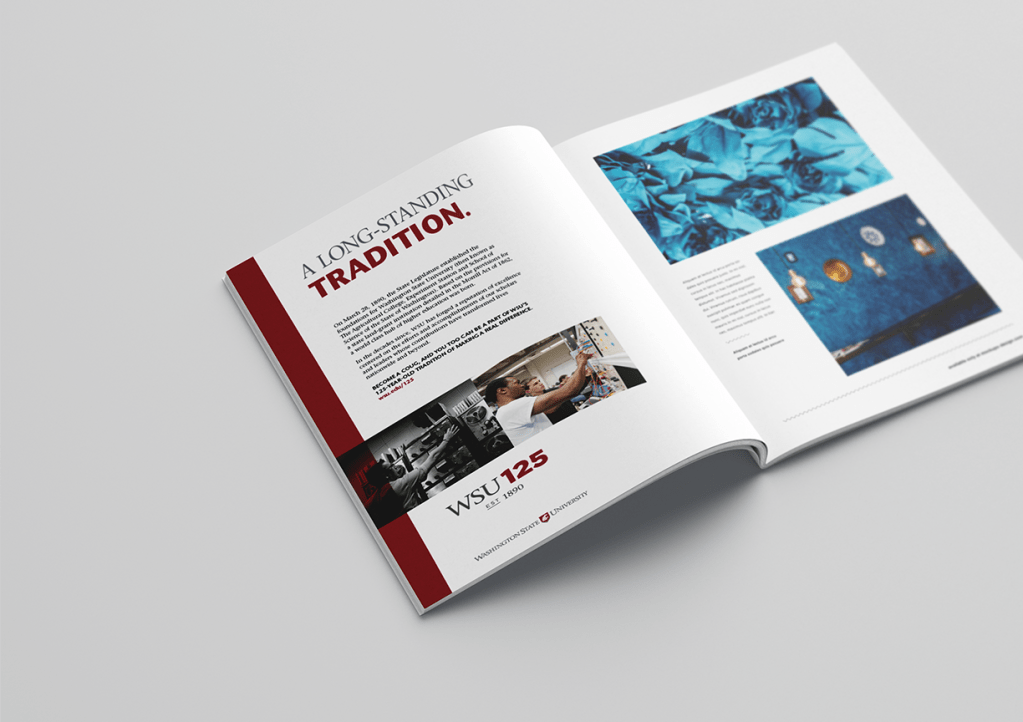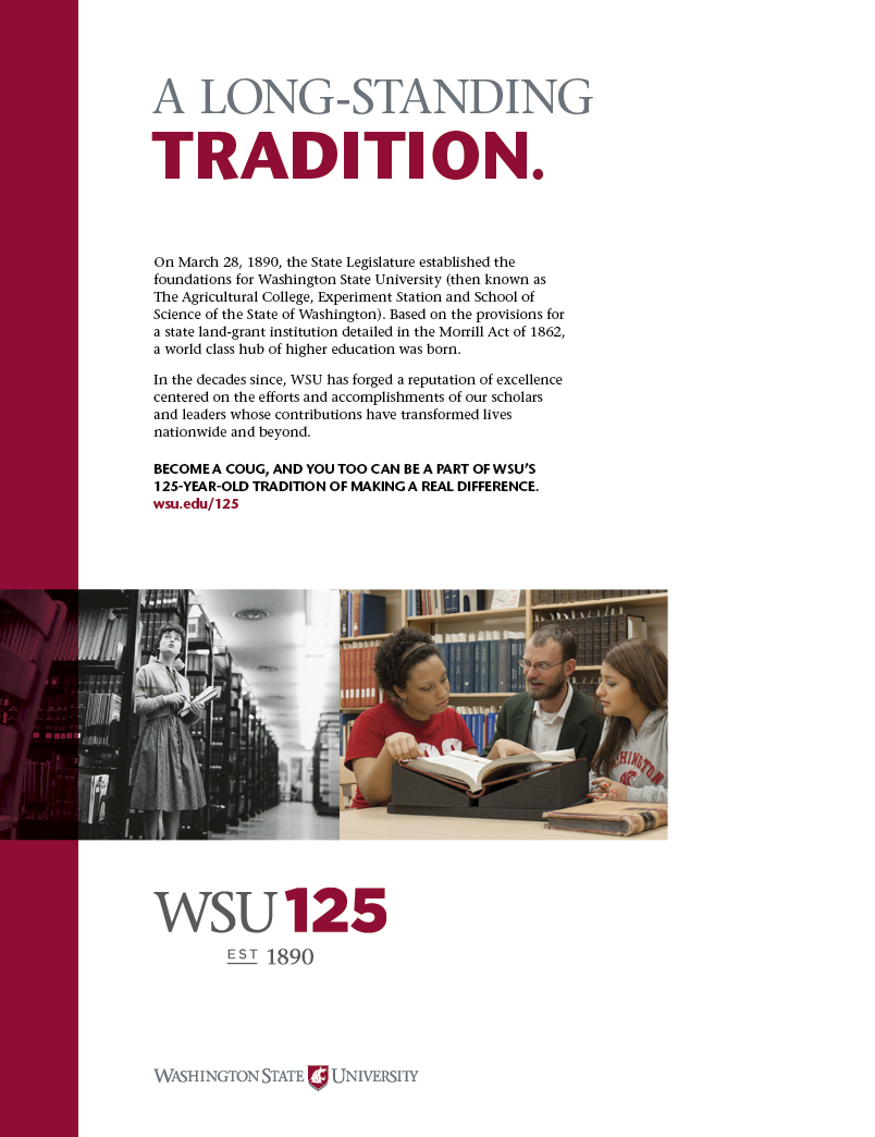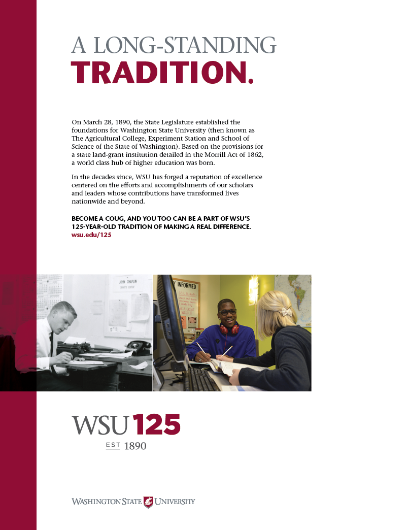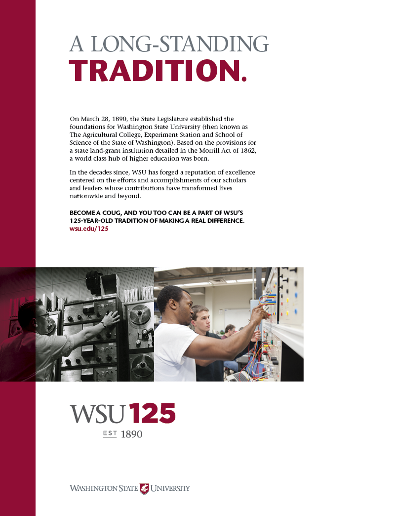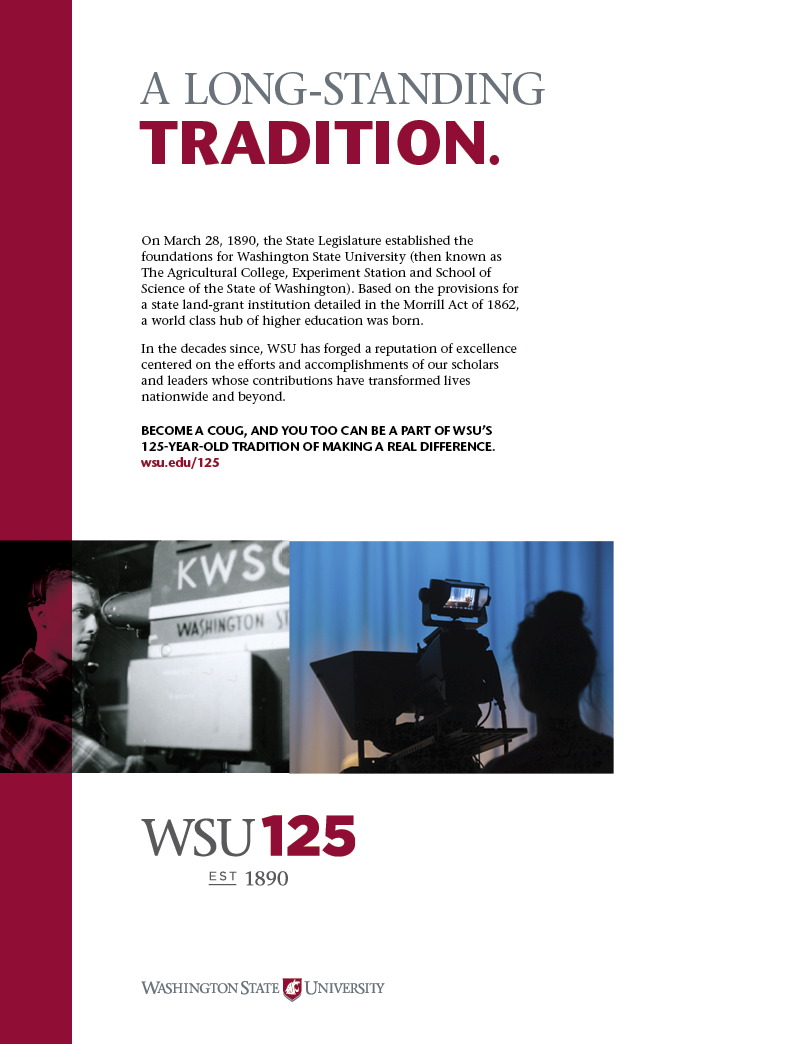 My team was tasked with developing a campaign for Washington State University’s 125th anniversary. The focus of the campaign was to raise awareness of what the school has accomplished and excels at in education and research.