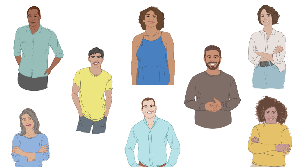 On this project, I was asked to illustrate a group of characters to represent a diverse set of customers, for use in clean energy advertising campaigns.