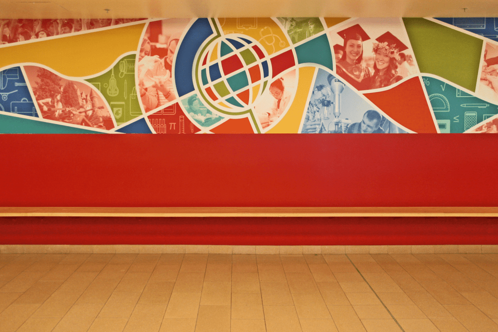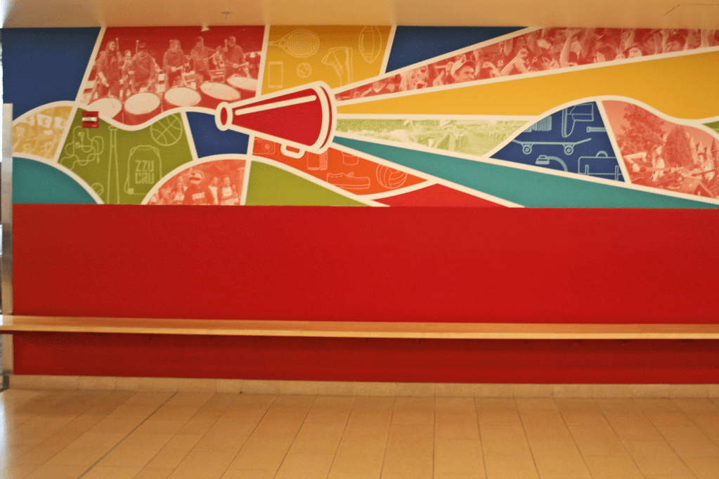 I was tasked with designing a mural for a stretch of wall across from the Bookie in Washington State University’s student union building. The requirements were to represent the diversity of the campus and the four core messages of the university at the time: Spirit, Respect, Learning, and Friendship.