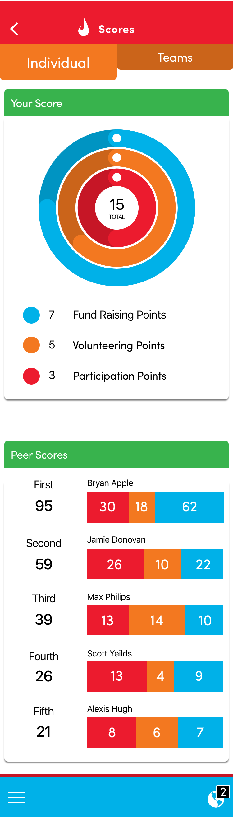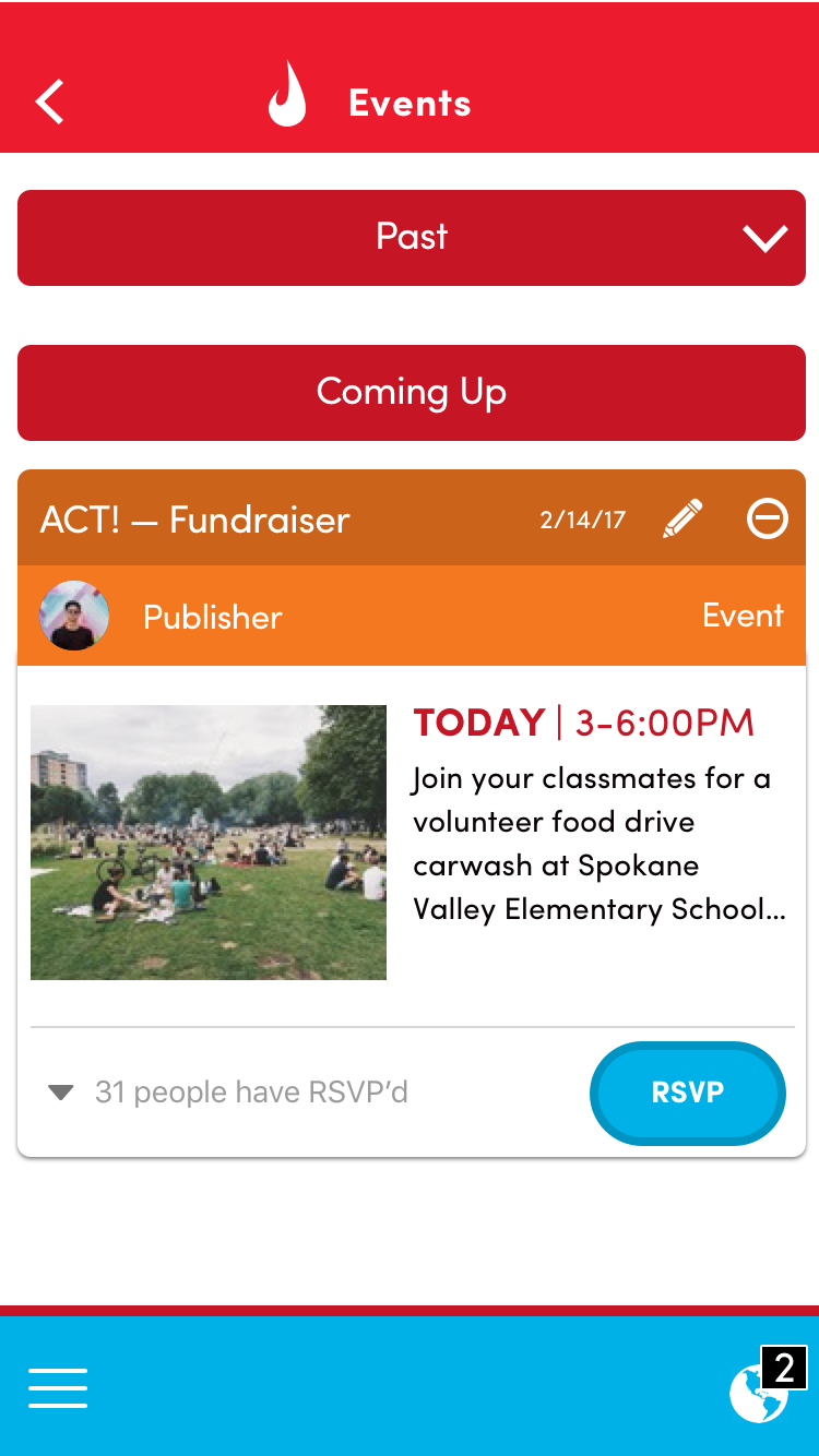 My team was tasked with developing an app that would allow youth and parent users to engage in the client’s philanthropy program, tracking volunteer hours, fundraising, and participation for individual participants and teams.